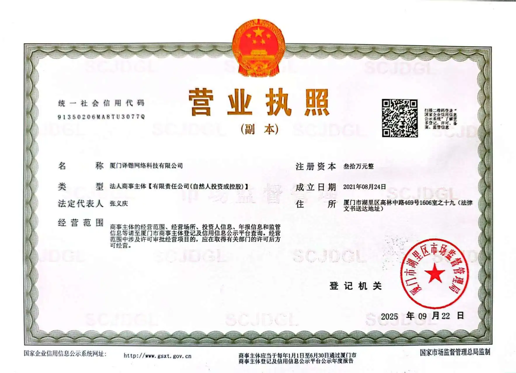 Registered address : Room 1606, Unit 19, No. 469 Gaolin Middle Road, Huli District, Xiamen City Xiamen Fujian China